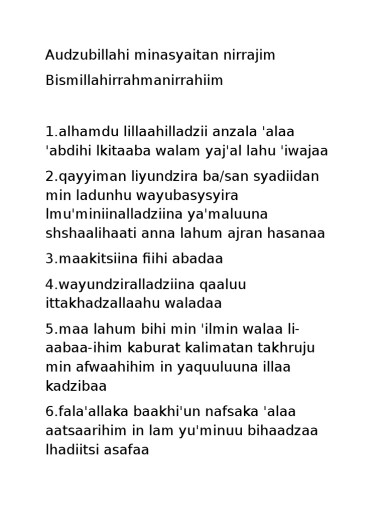 Alkahfi 1 10 terbaru gratis dan mudah dinikmati. 0 ratings0% found this document useful (0 votes). Assalamualaikum salam jumaat penghulu segala hari. Surah ini terdiri atas 110 ayat dan bercerita tentang beberapa orang pemuda yang tidur dalam gua. Dibaca idzhar (idzhar didalam hukum mim mati) yaitu huruf mim mati bertemu dengan huruf ya, cara membacanya suara mim mati dibaca dengan jelas.